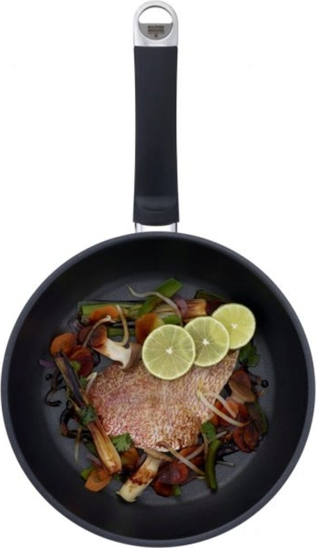 Prevlečena ponev iz nerjavečega jekla je bila izdelana v Švici in je idealna za nežno peko zelenjave, mesa, jedi iz jajc in krompirja.