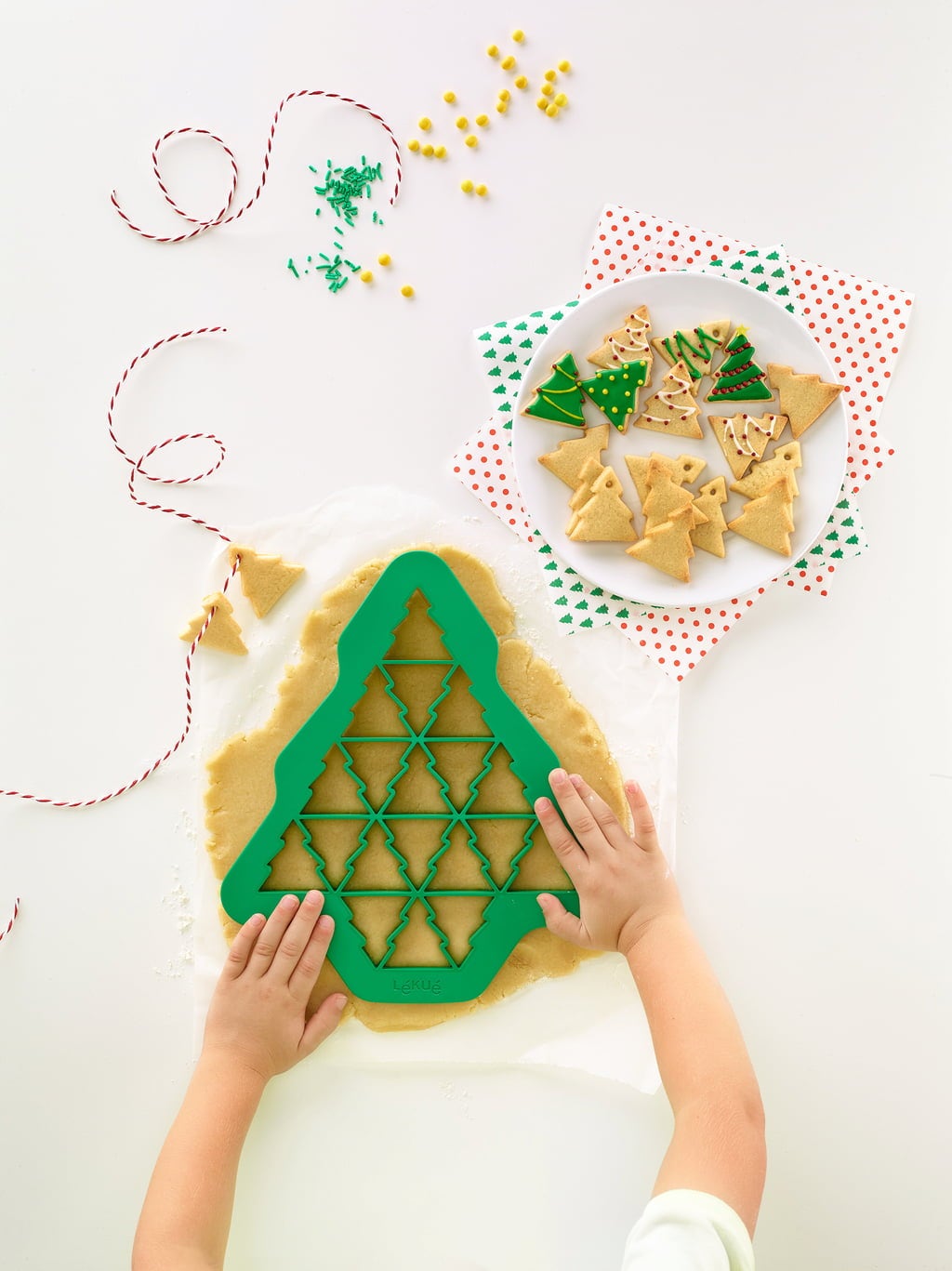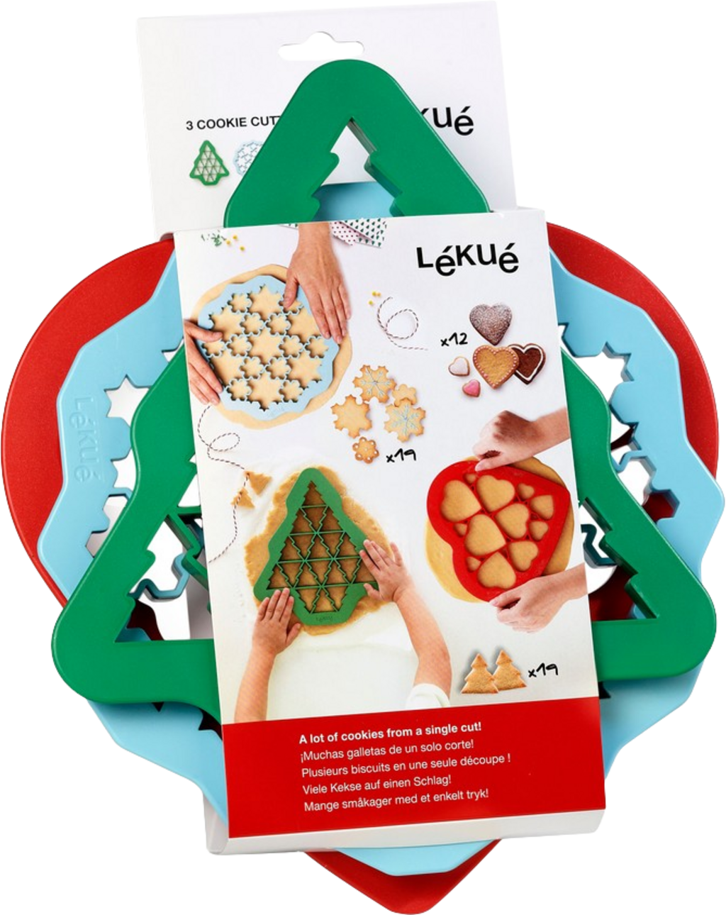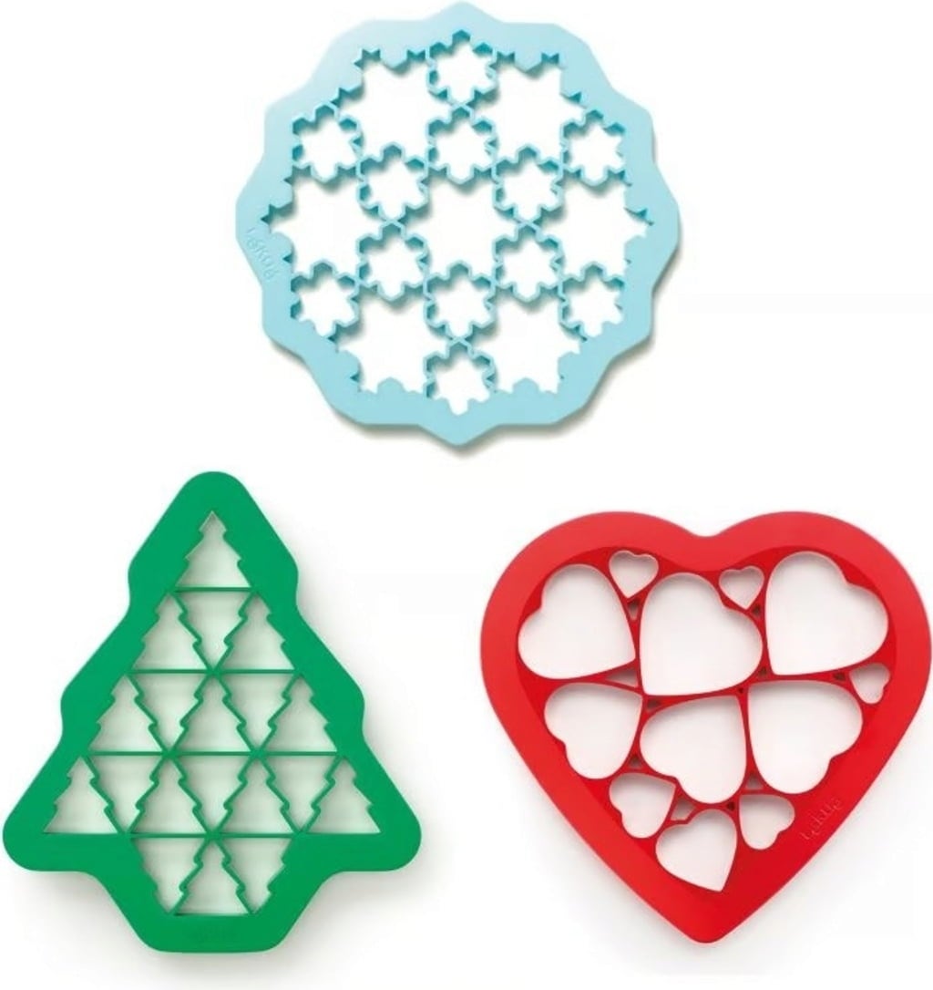 S temi praktičnimi modelčki za piškote znamke Lékué so božični piškoti pripravljeni v hipu! Z eno samo uporabo lahko izrežete več piškotov hkrati in ustvarite piškote z božično tematiko v obliki božičnega drevesca, snežinke ali srca!