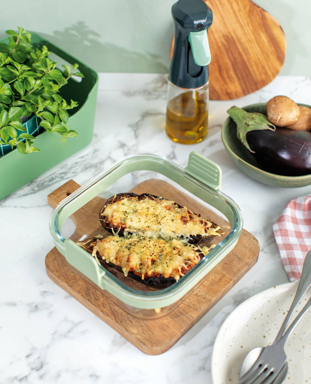 Ta pametna večnamenska posoda, izdelana iz robustnega borosilikatnega stekla, ni popolna le za nežno kuhanje v cvrtniku na vroč zrak, temveč se lahko uporablja tudi v pečici ali mikrovalovni pečici. Zahvaljujoč minimalistični zasnovi z odstranljivimi ročaji se lahko uporablja tudi za serviranje neposredno na mizo.