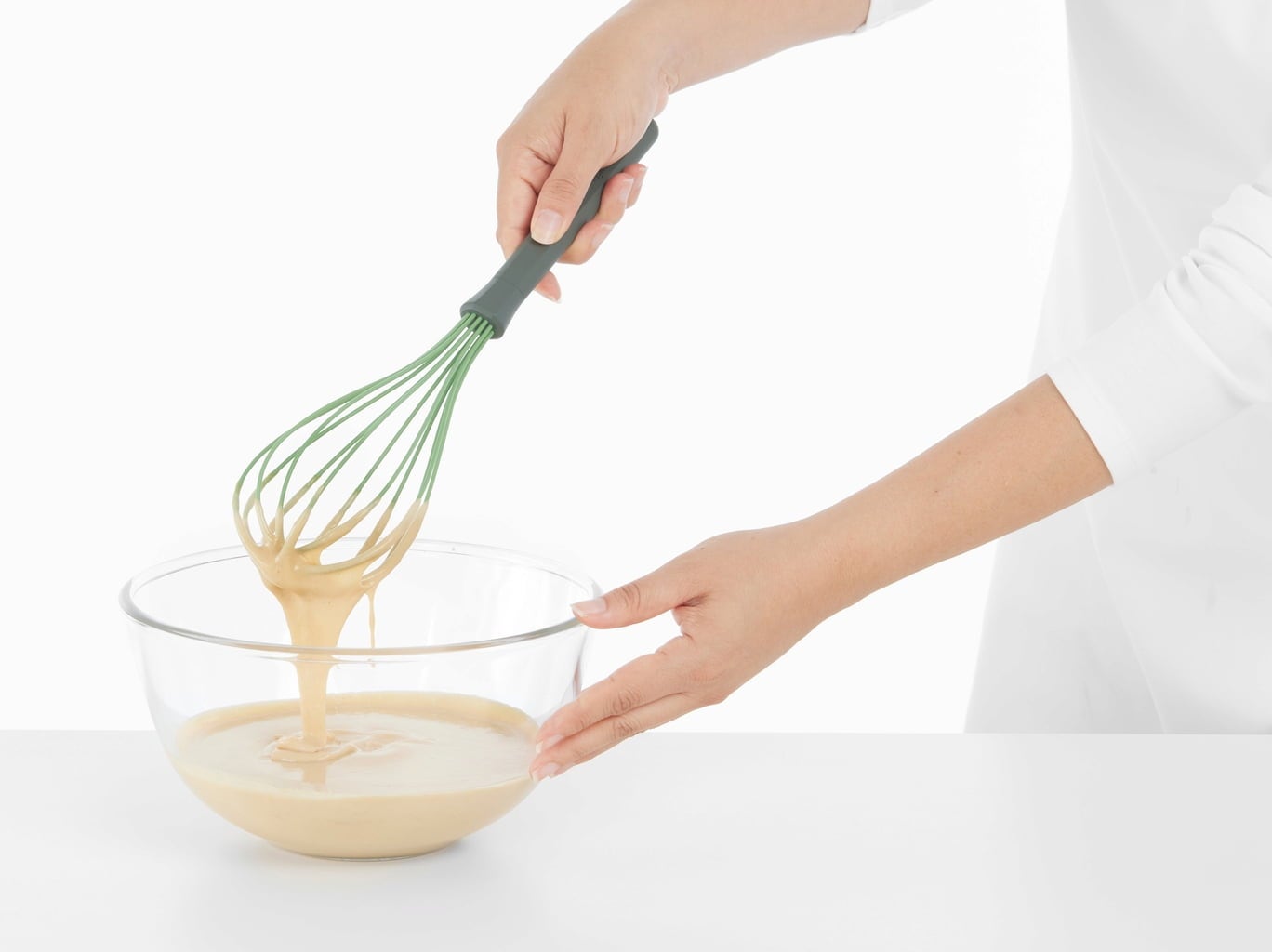 Metlica brez BPA je zasnovana tako, da je v celoti odporna na vročino: silikonska konica prenese temperature do 220 °C, robusten in higieničen ročaj iz PBT pa lahko prenese temperature do 180 °C. To pomeni, da jo lahko celo na kratko postavite na rob vroče ponve, ne da bi se poškodovala, saj vam vedno nudi mehak in varen oprijem.