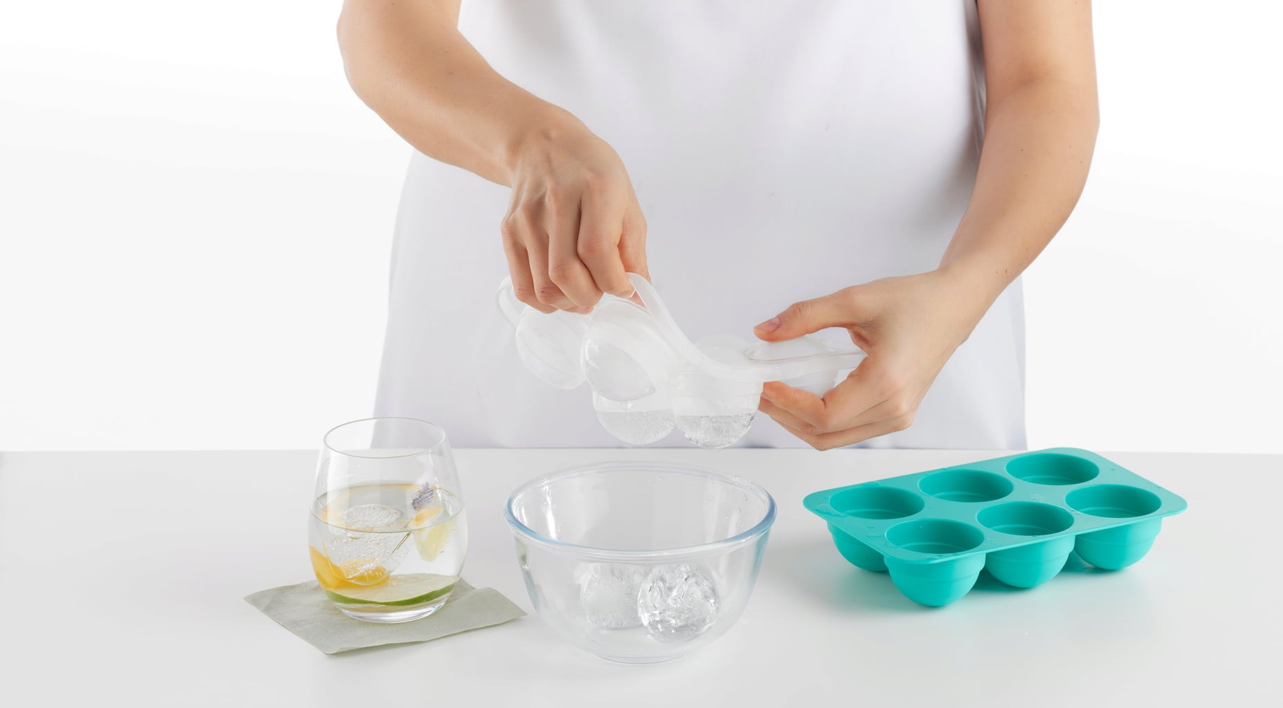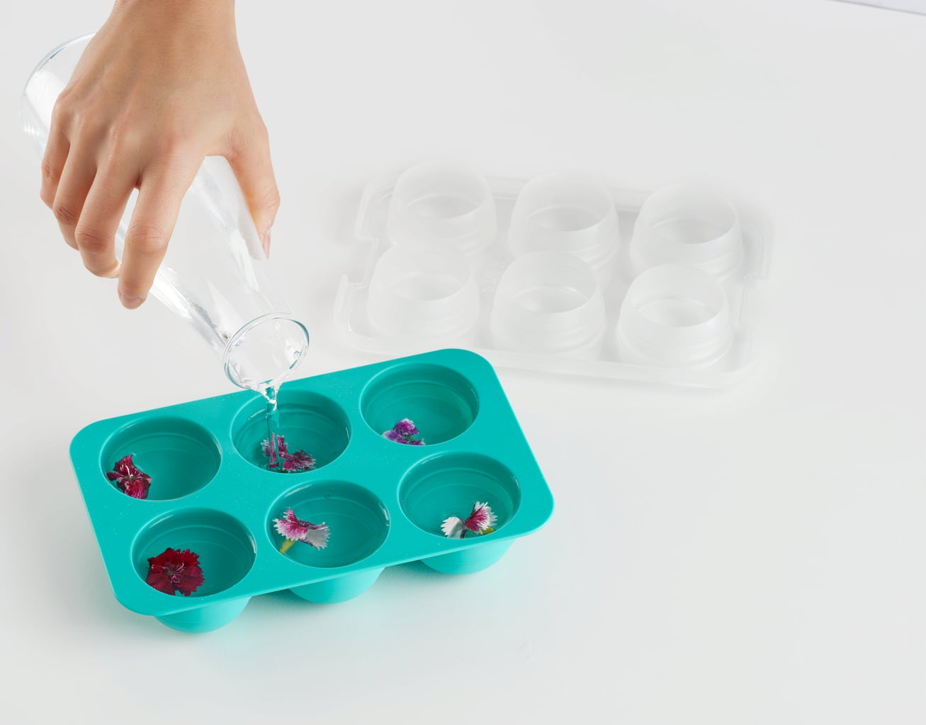 Model preprosto napolnite do roba in trdno pritrdite pametni platinasti silikonski pokrov – ne le, da zagotavlja popolnoma oblikovane kepice in ščiti pred neželenimi vonjavami iz zamrzovalnika, ampak trdno dno omogoča tudi transport v zamrzovalnik brez kapljanja. Ko so kroglice zamrznjene, se prilepijo na pokrov, kar olajša odstranjevanje: Preprosto ločite pokrov od dna in brez napora snemite kroglice ledu.