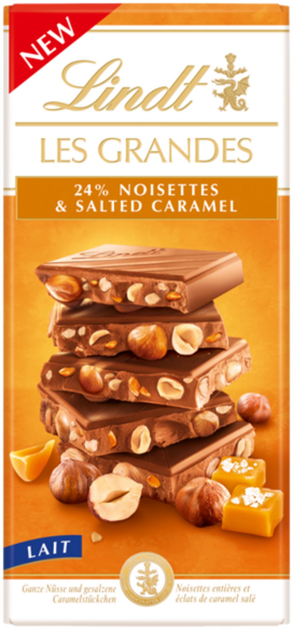 Lindt Čokolada Les Grandes - slana karamela in lešniki, 150 g