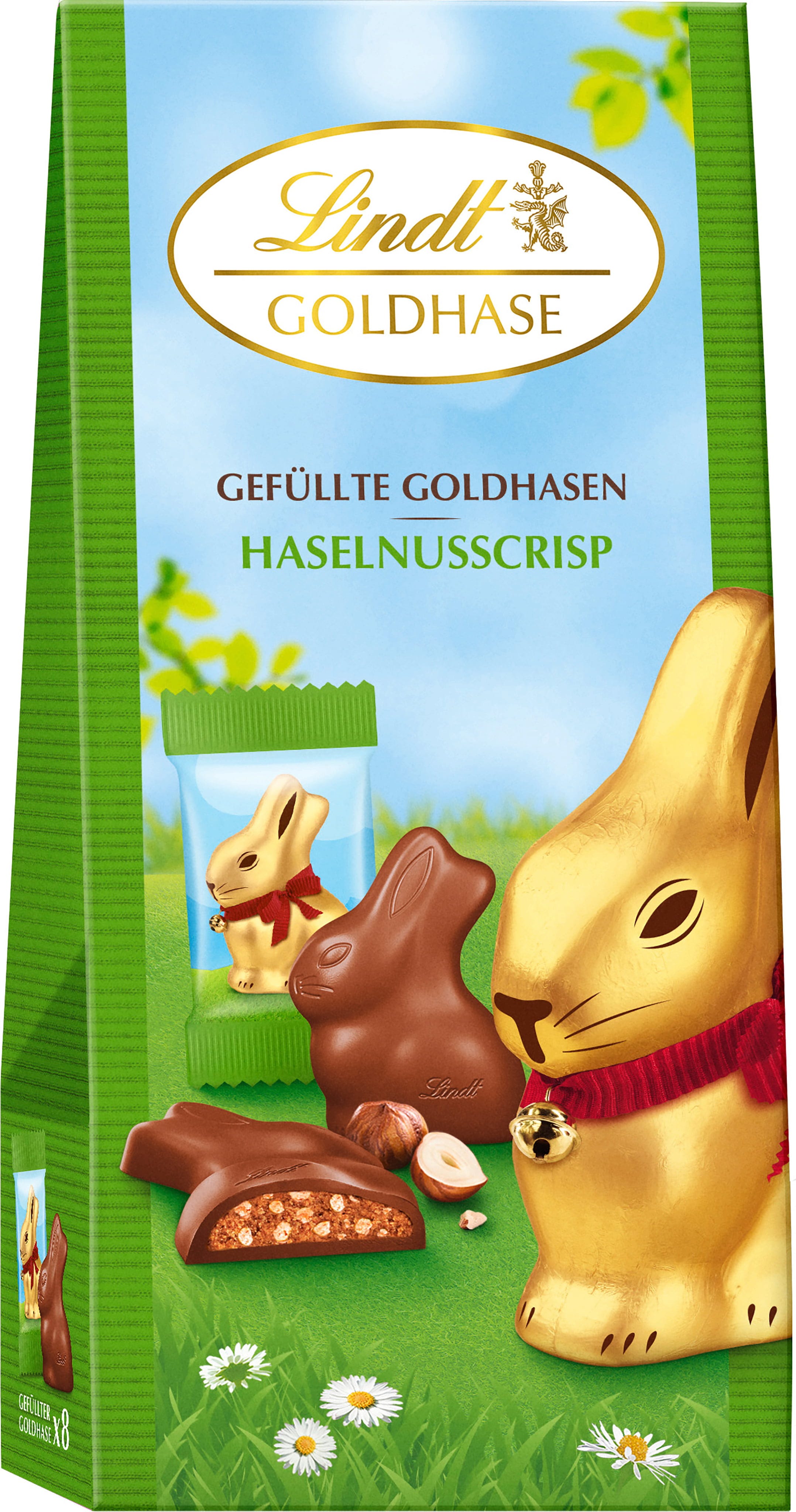 Odkrijte slavnega Lindtovega zlatega zajčka iz povsem nove perspektive, polne lešnikov! Tukaj ne boste uživali le v klasični alpski mlečni čokoladi, temveč v pravi teksturni pustolovščini z žametnim lešnikovim kremnim nadevom. Dodani hrustljavi koščki zagotavljajo popoln hrustljav občutek v vsakem grižljaju in se odlično dopolnjujejo z mehkim nadevom.
