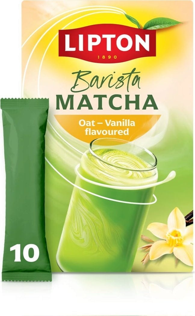 Barista Matcha Vanilla Oat znamke Lipton združuje visokokakovosten matcha prah z blago sladkostjo ovsa in kančkom vanilije. Pripravljena v le nekaj preprostih korakih, ta mešanica zagotavlja pravo barista izkušnjo doma ali v pisarni.