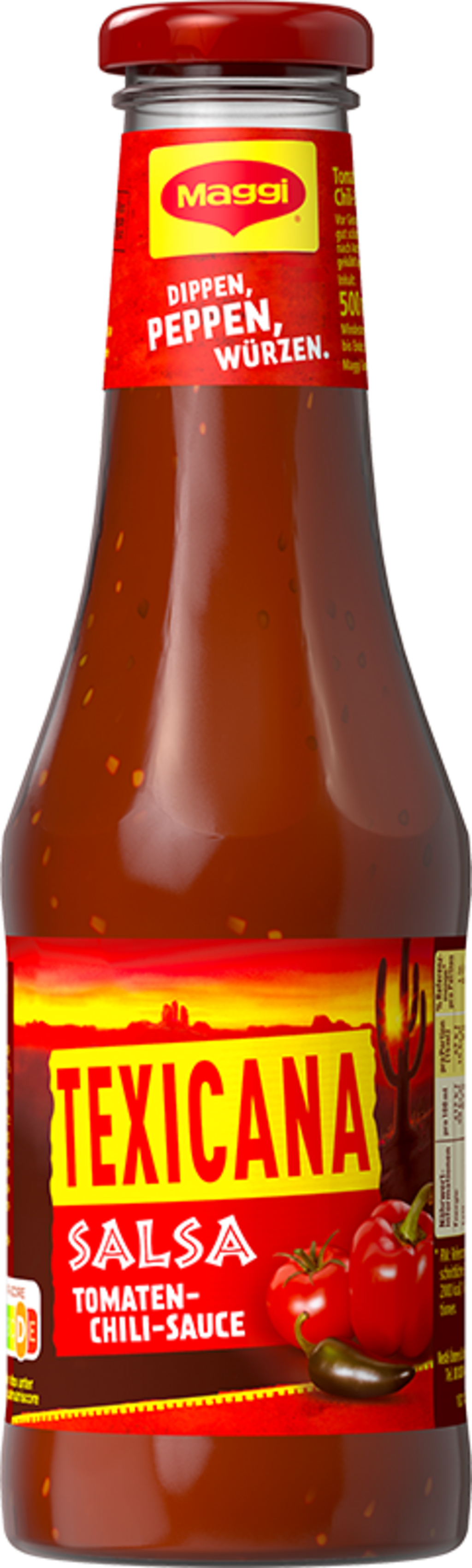 Privoščite si pristen Tex-Mex okus z Maggi Texicana Salso. Ta pikantna, sladka in začinjena omaka združuje sadne paradižnike, okusne paprike, hrustljavo čebulo in pekoče jalapeño paprike v aromatično mešanico. Popolna je za pomakanje nachosov ali za dodajanje pikantnosti zrezkom, burgerjem in pečeni zelenjavi.