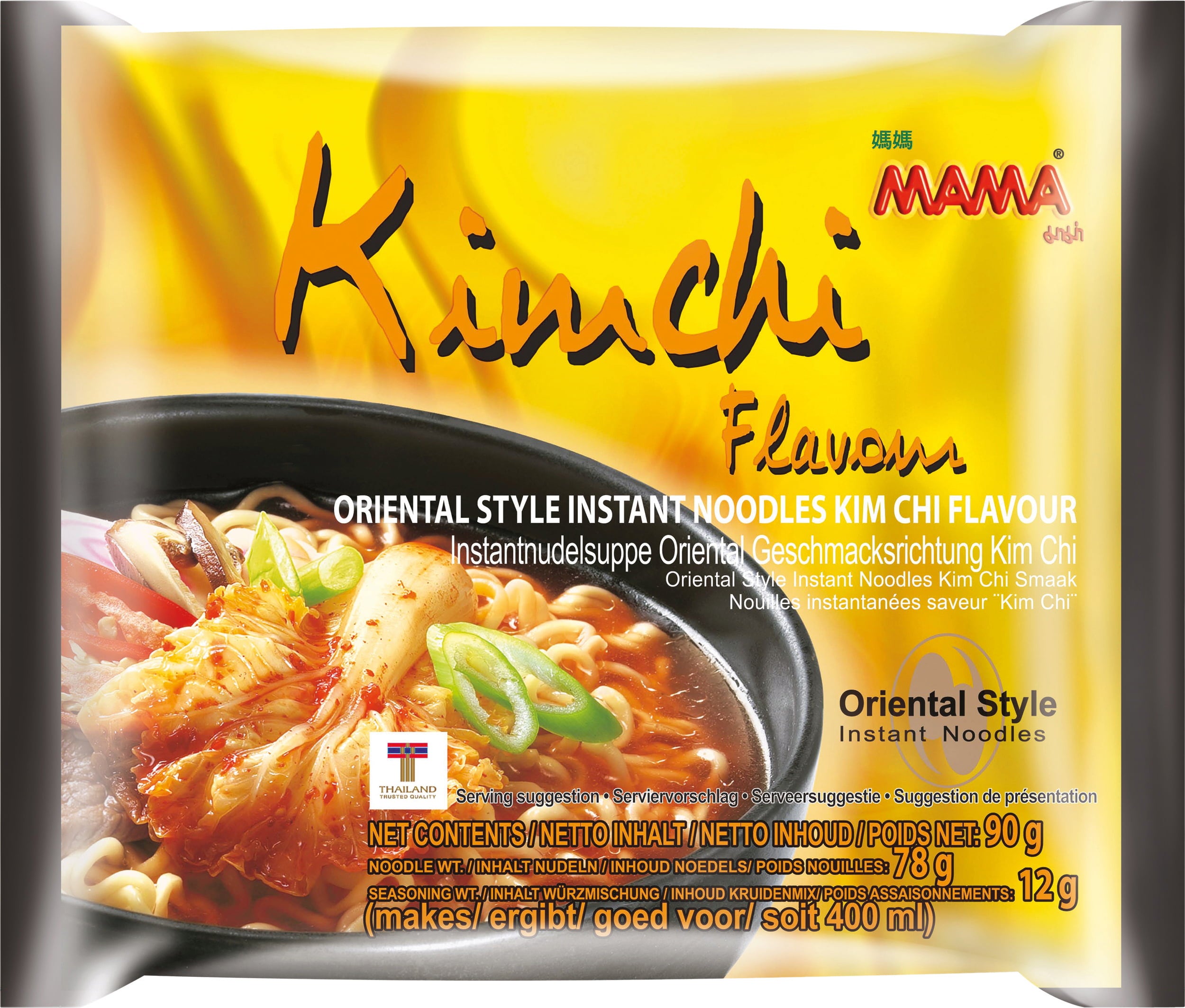 Instant rezanci Kimchi znamke MAMA združujejo tajsko umetnost rezancev s tipično korejsko kimchi začimbo: pikantno, rahlo kislo juho s suho zelenjavo in pristno aromo.