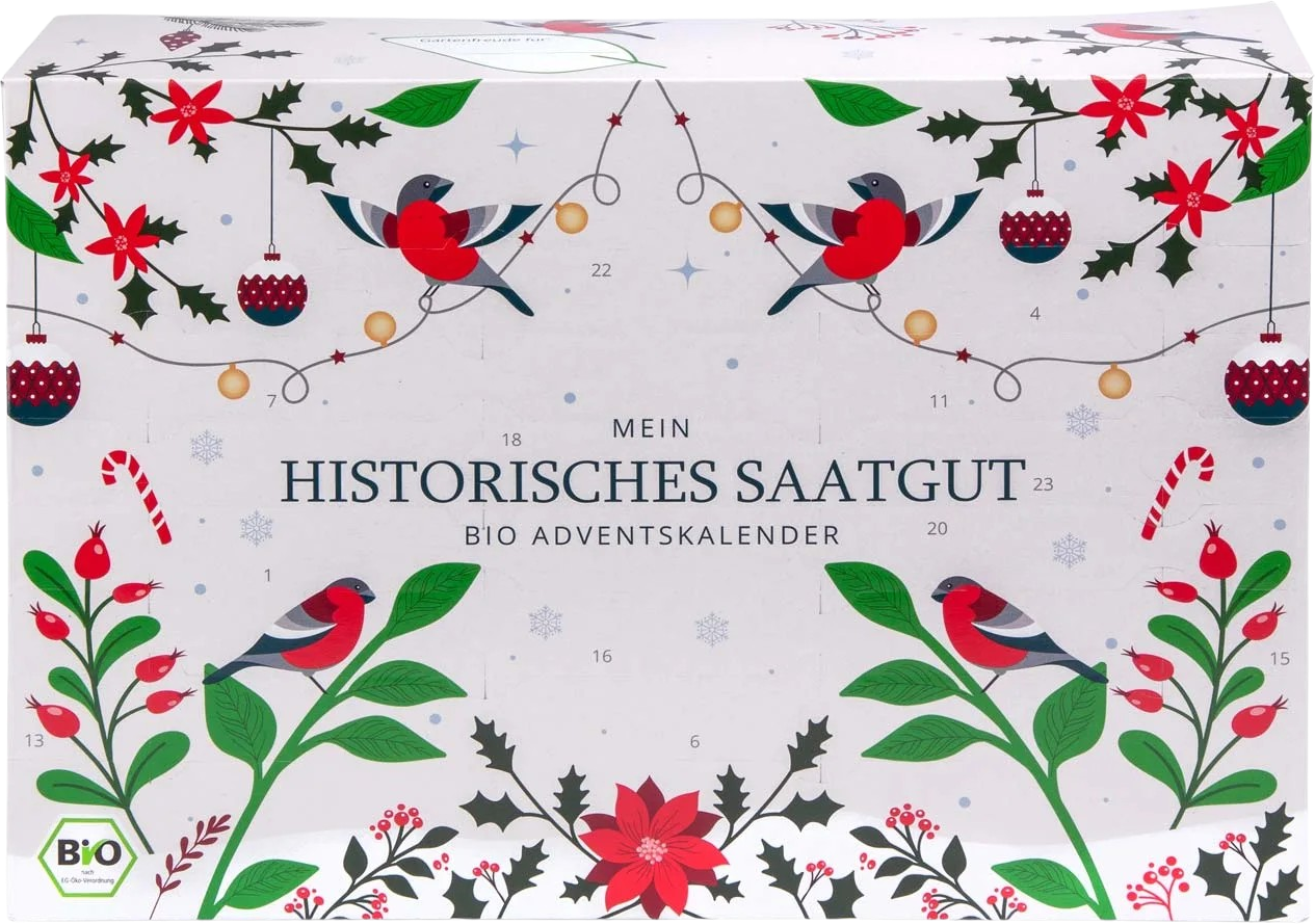 Ta adventni koledar vsebuje 24 različnih vrst tradicionalne zelenjave in zelišč v ekološki kakovosti. Zaradi tega je idealen začetni komplet s pozabljeno zelenjavo in zelišči. Popoln za vse, ki cenijo varstvo okolja, ohranjanje vrst in naravne okuse.