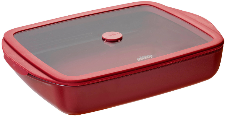 Pebbly Pravokotna steklena posoda za peko s pokrovom iz stekla in silikona, 1,6 l, Češnja