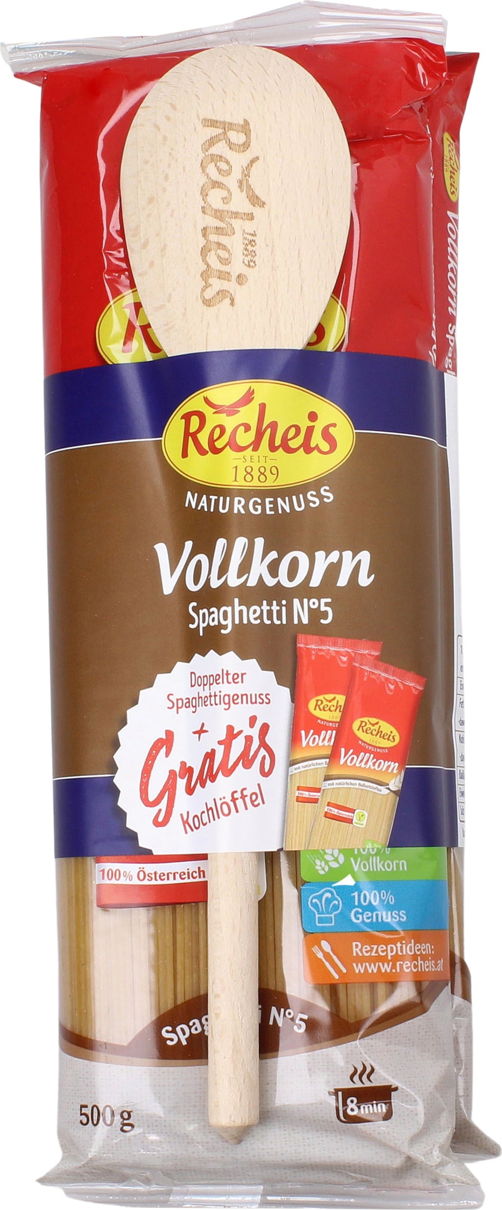 Ponudba, ki je ljubitelji znamenitih jajčnih testenin Recheis ne smete zamuditi! Varčni paket z dvema paketoma špagetov N°5 in zelo uporabno leseno žlico kot darilo. Odlično za velike družine ali večere s prijatelji. Omejena izdaja - samo za kratek čas!