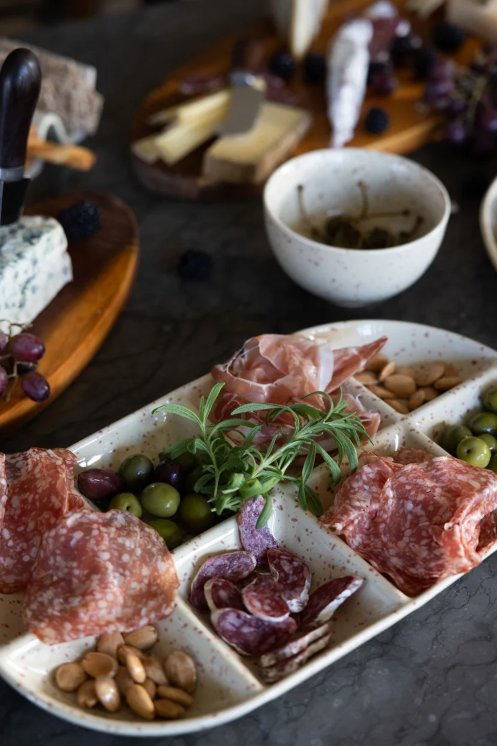 Ta eleganten krožnik znamke sagaform je idealen za tapase, tacose ali manjše jedi. Ovalna oblika ponuja veliko prostora, prihrani prostor na mizi in zmanjša potrebo po pomivanju. Vsak kos je ročno izdelan iz keramike, zato je edinstven po barvi in površini.