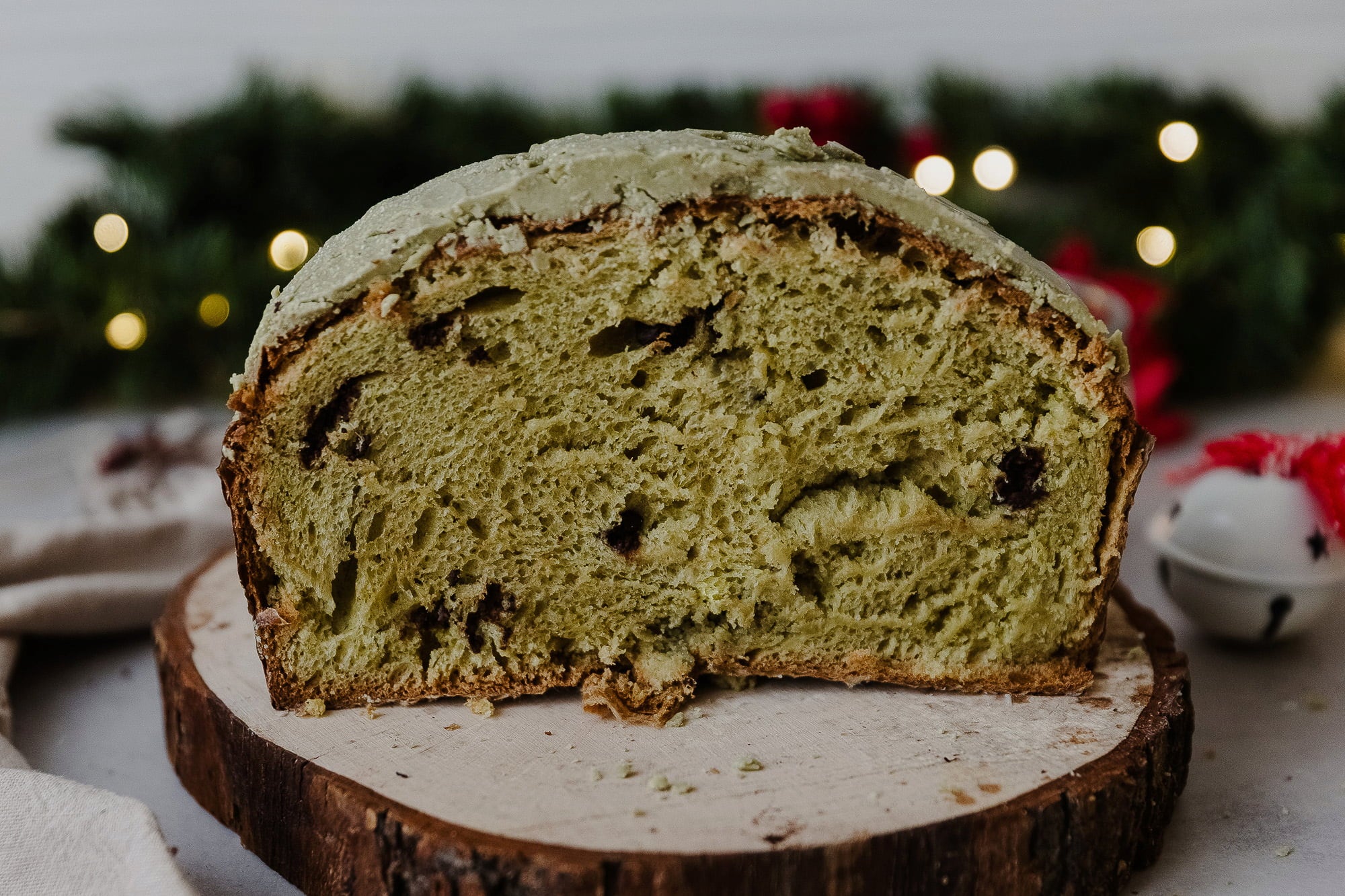 S tem ekskluzivnim panettonom bo vaše praznično kosilo popolno! Njegovo vegansko kvašeno testo je puhasto in sočno, obogateno s temno čokolado za prave sladokusce - idealna izbira za razkošen praznični desert.