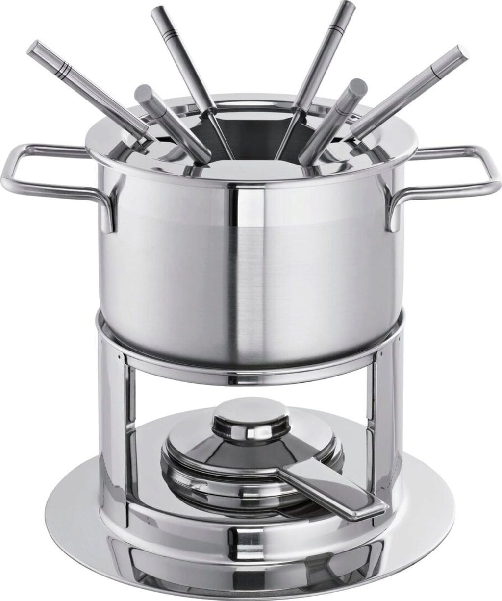Sirni, mesni ali čokoladni? Ne glede na to, kateri fondue imate najraje, ta set bo izpolnil vse kulinarične želje. Lonec iz visokokakovostnega nerjavečega jekla lahko segrevate na vseh običajnih vrstah kuhalnih površin. Primeren je tudi za pečico in za pomivanje v pomivalnem stroju. Set vsebuje tudi šest ločeno označenih vilic, da med uživanjem jedi ne bo nereda.