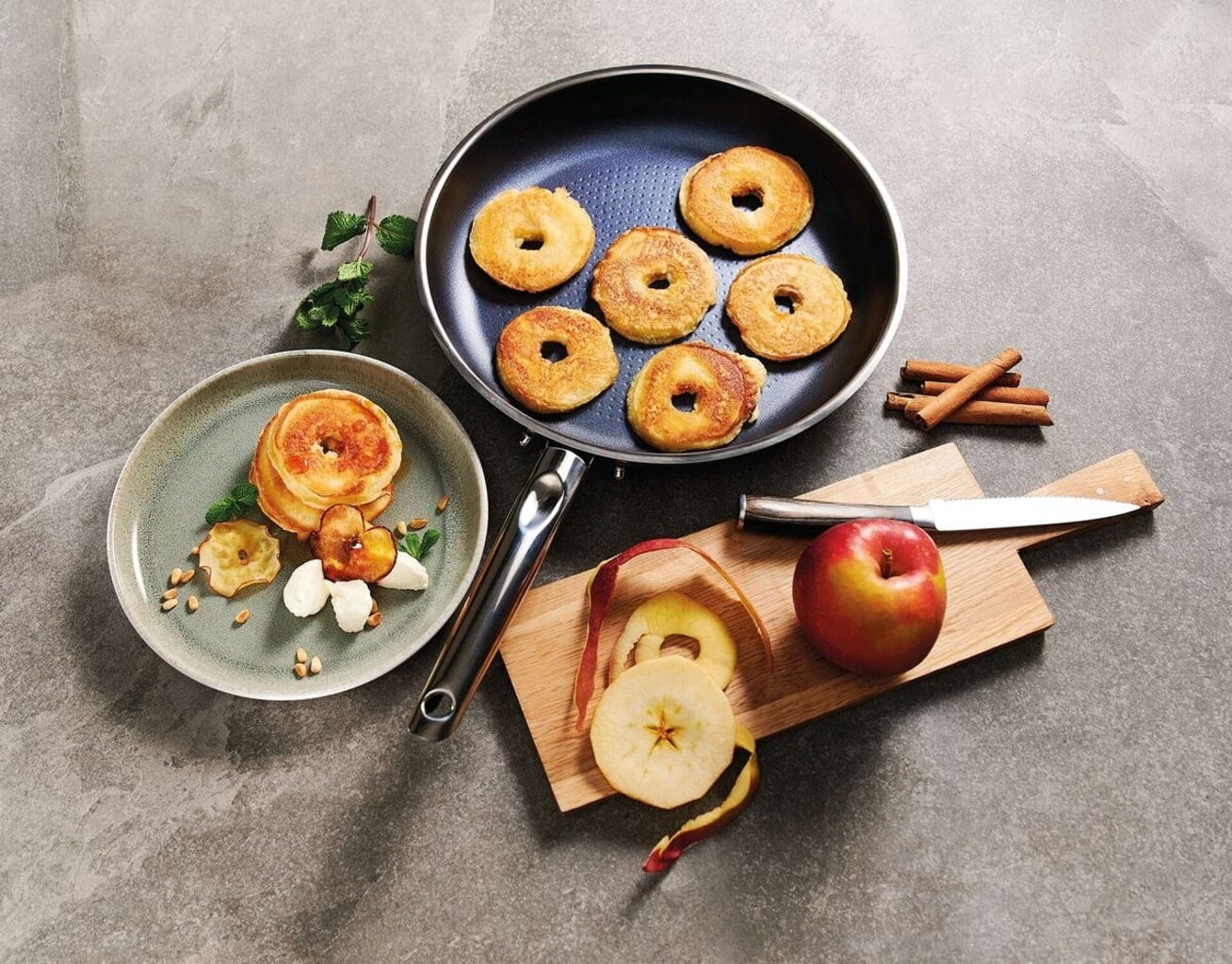 Ta vsestranska ponev je primerna za vse vrste štedilnikov. Je popolna za praženje in dušenje hrane z nizko vsebnostjo maščob. To omogoča kombinacija neravnega dna z reliefom pik in XXStrong diamantnega premaza proti prijemanju. Bakreno dno Protherm® se izredno hitro segreje in pospeši čas kuhanja.