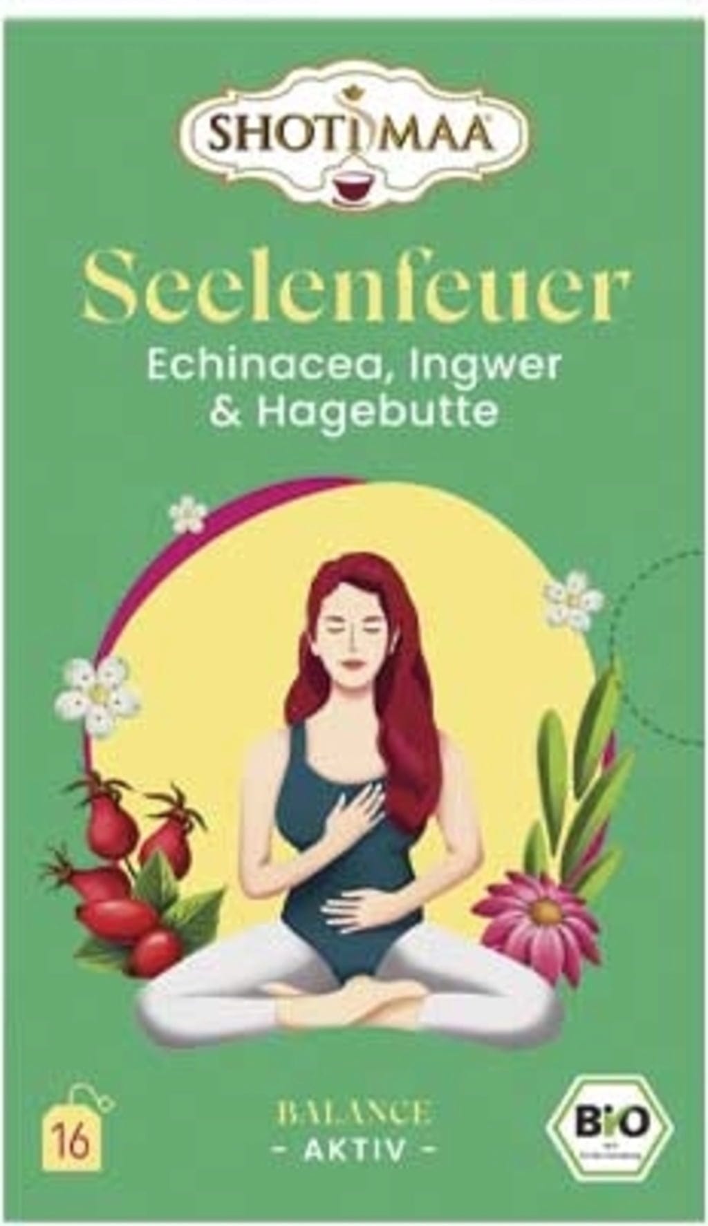 Shoti Maa Bio čaj "Ogenj duše" - ameriški slamnik, ingver in šipek, 16 čajnih vrečk (32 g)