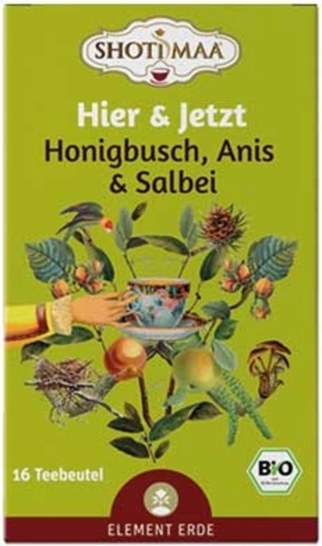 Shoti Maa Bio čaj "Tukaj in zdaj" - medeni grm, janež in žajbelj, 16 čajnih vrečk (32 g)
