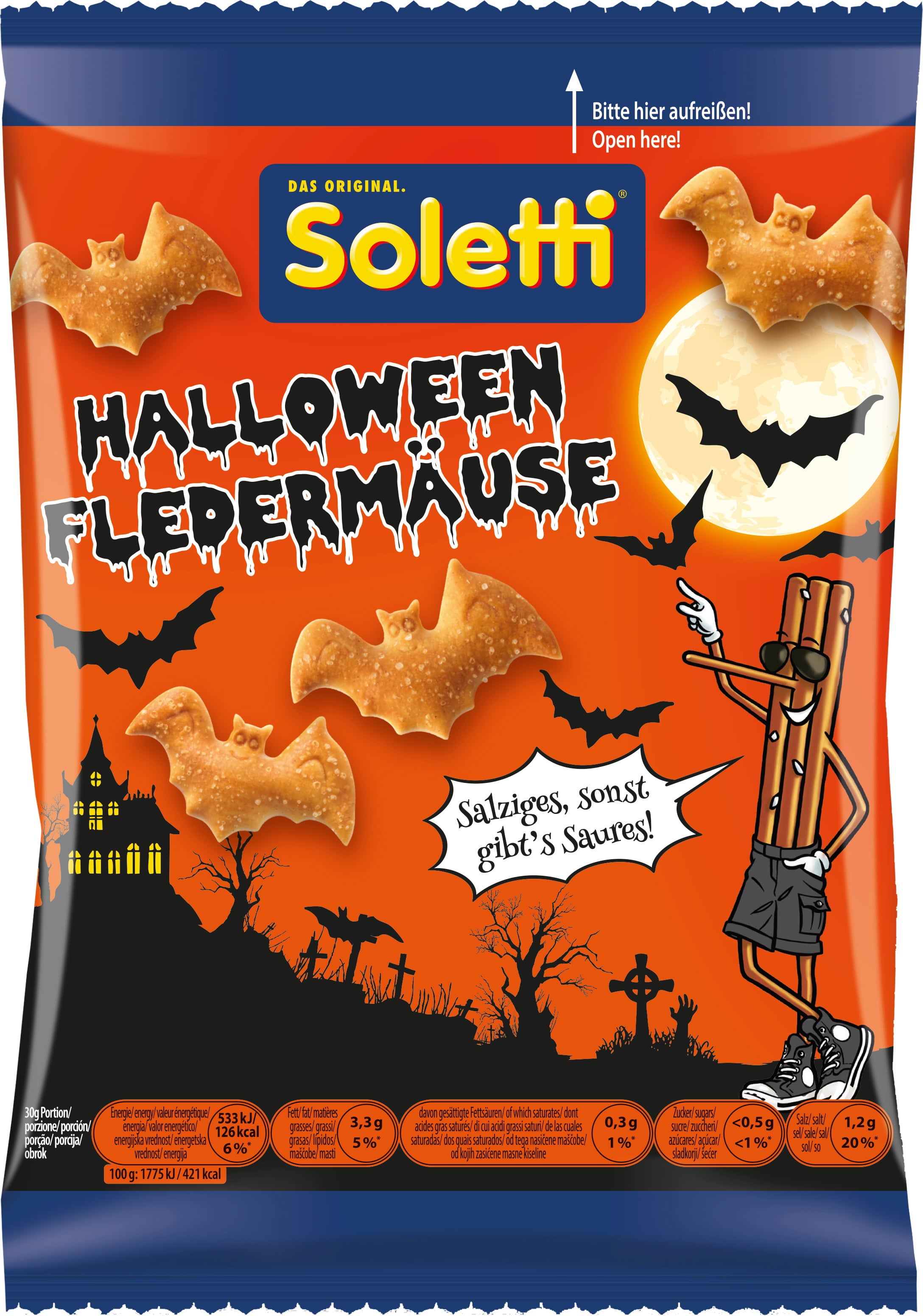 Privlačen pogled na vsaki zabavi za noč čarovnic ali na vsaki večerji ob noči čarovnic. Netopirji Soletti Halloween s preizkušenim okusom Soletti niso le dekorativni, temveč tudi strašljiv in zabaven prigrizek za prijatelje ali družino.
