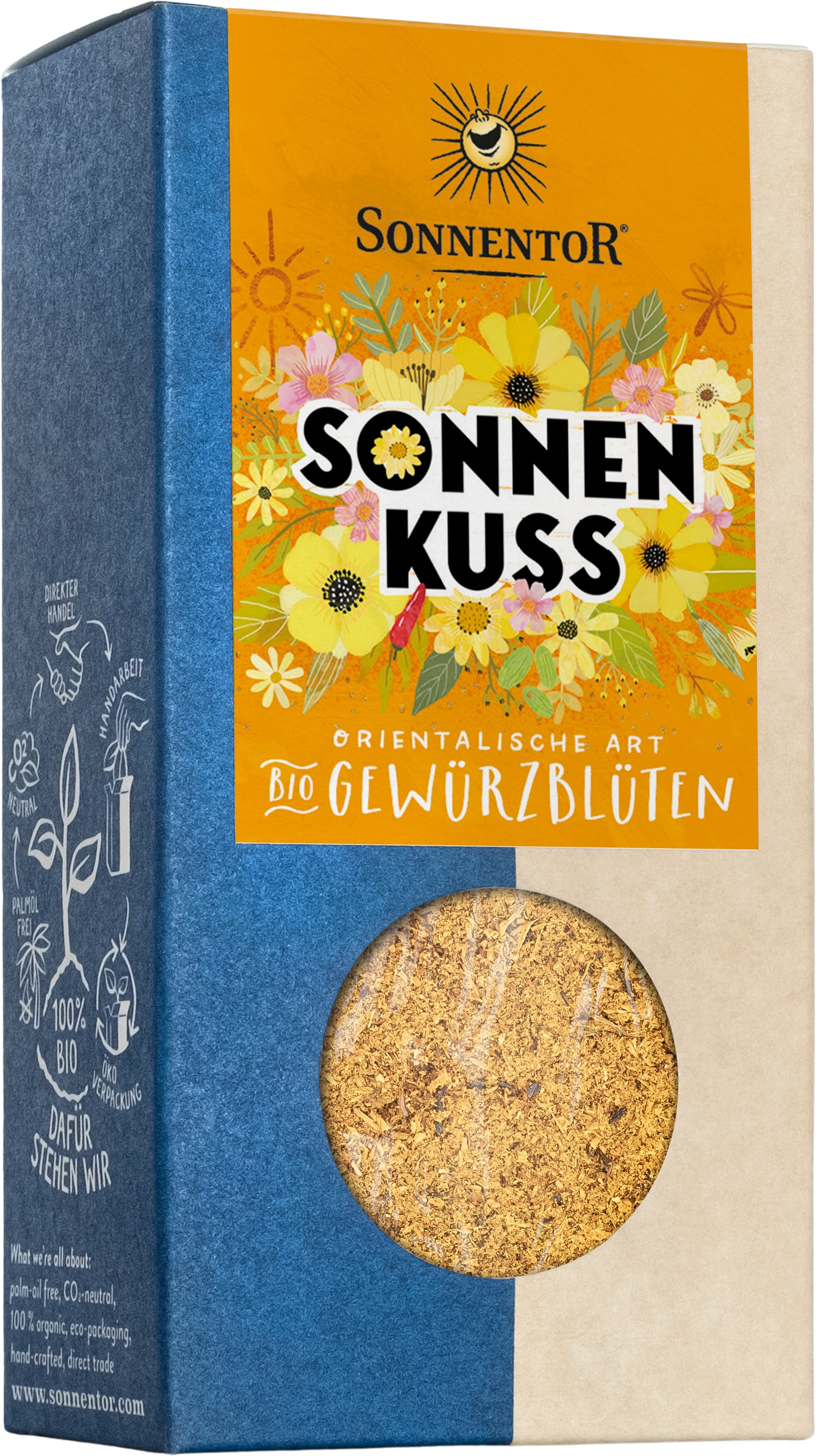 Vsakdo, ki se ob kuhinji Daljnega vzhoda počuti kot doma in želi svoje goste presenetiti z nenavadnim kosilom iz Azije in mešanico začimb Sonnenkuss. Sončna rumena barva mešanice poljuba sonca že razkriva, da gre za začimbo kari. Juhe, jedi iz mesa in zelenjave dobijo z začimbno mešanico prav posebno noto. Prav tako je zelo priporočljivo, da se pečeno zelenjavo v voku potrese z začimbo in indijskimi oreščki.