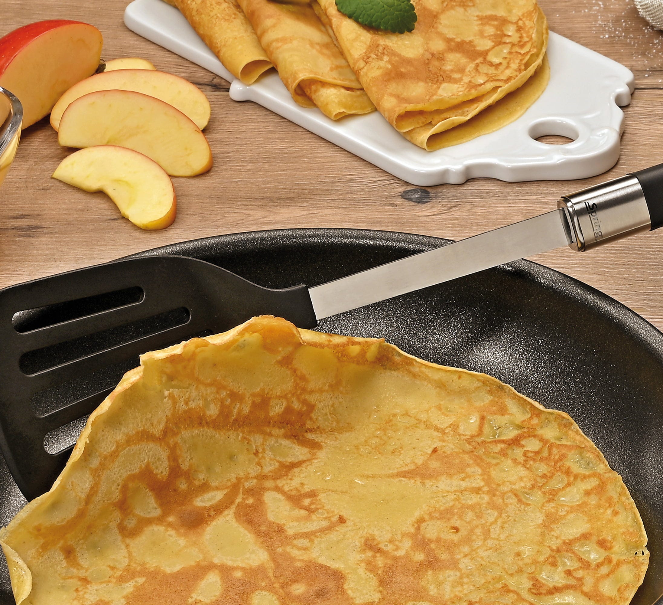 • odporen premaz z gorskimi kristali: 3-slojna plast proti sprijemanju s švicarskimi gorskimi kristali je tako robustna, da kovinske lopatke niso nobena težava