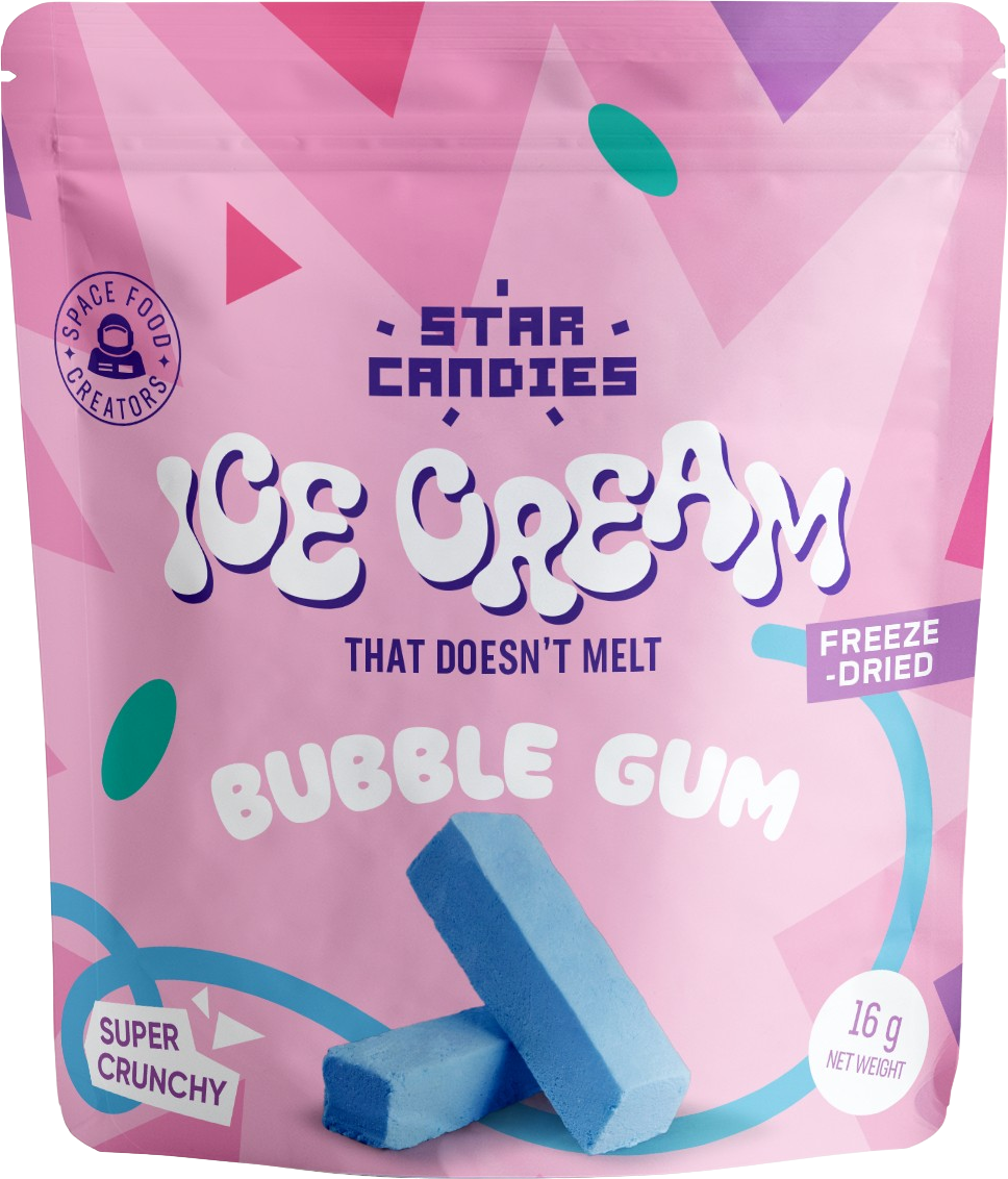 Odkrijte STAR CANDIES liofiliziran sladoled z okusom žvečilnega gumija znamke Supergarden! Ta izjemna sladica je eksotična, čudovito hrustljava, peresno lahka in se ne stopi - popolna izkušnja sladoleda brez zamrzovalnika!