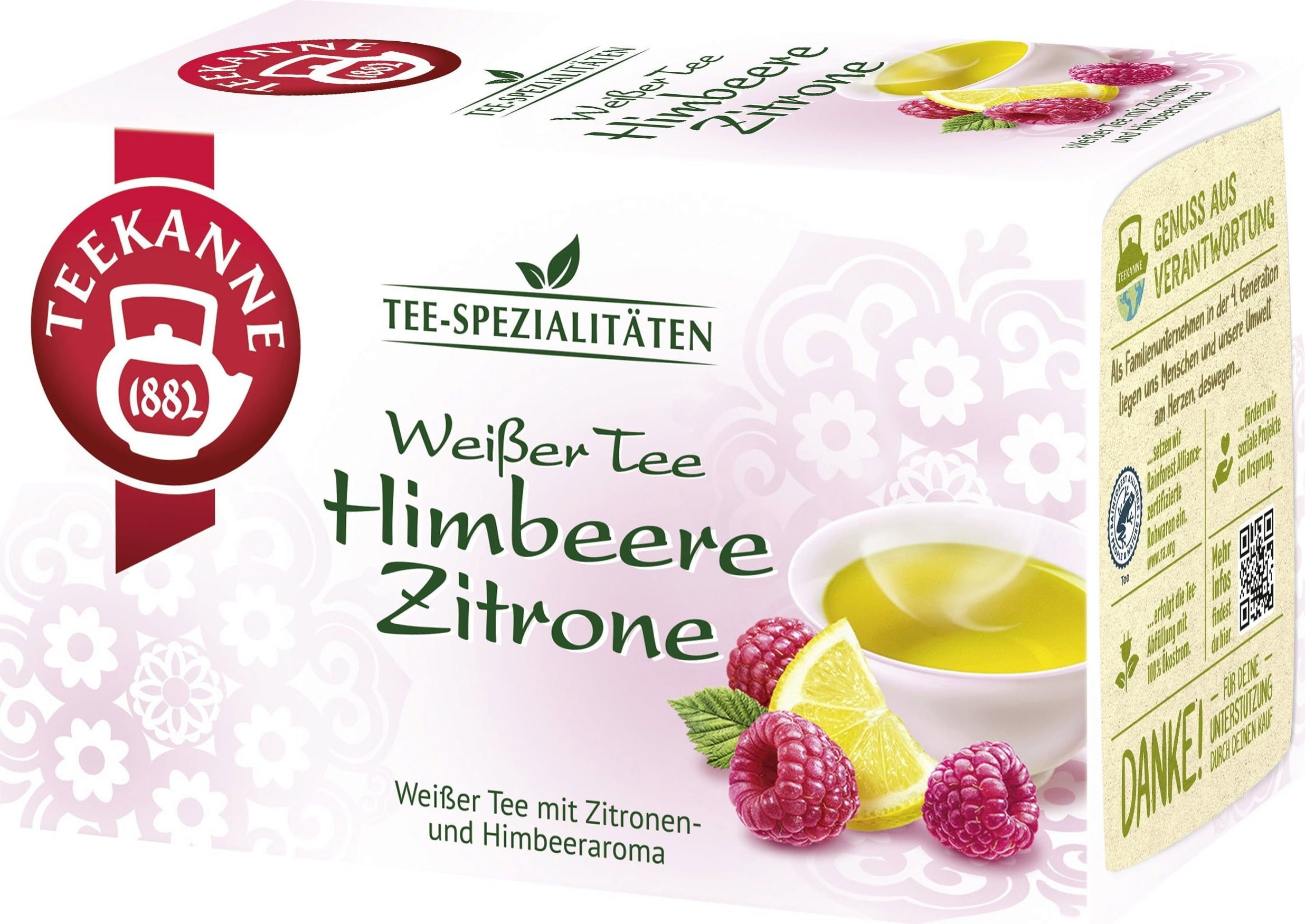 TEEKANNE Beli čaj z malino in limono, 20 Čajnih vrečk (25 g)