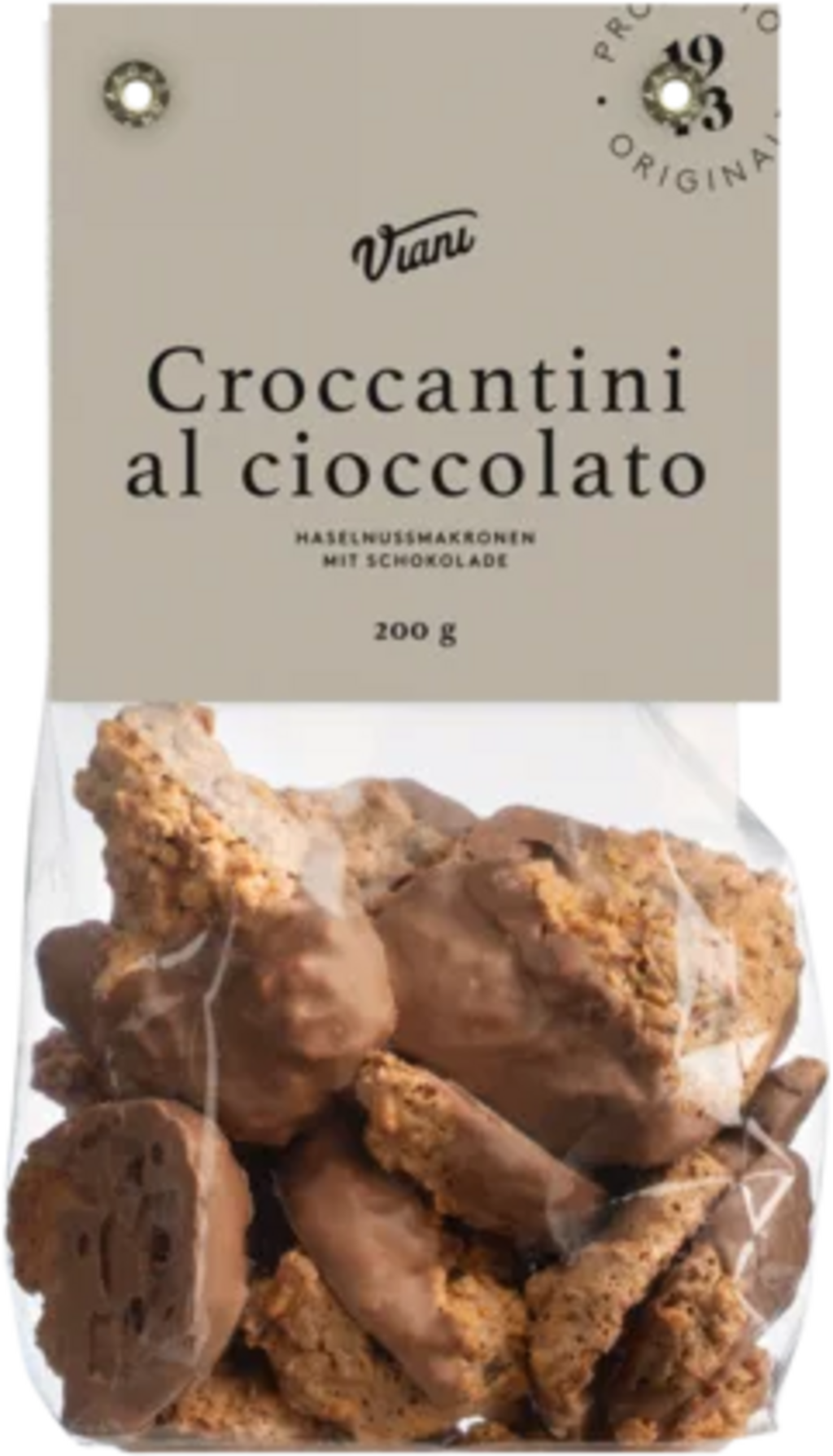 Privoščite si trenutek čistega užitka z Vianijevimi Croccantini, prefinjeno pečeno specialiteto, ki očara s svojo teksturo in visokokakovostnimi sestavinami. Podobno kot Brutti Ma Buoni so tudi ti piškoti narejeni iz ene tretjine aromatičnih lešnikov in pripravljeni s trsnim sladkorjem in beljaki, nato pa pečeni, dokler niso hrustljavi, a prijetno čvrsti na ugriz. Za popolno okusno izkušnjo so piškoti dve tretjini preliti z najfinejšo mlečno čokolado. Kombinacija, zaradi katere so popolni s kapučinom ali espressom.