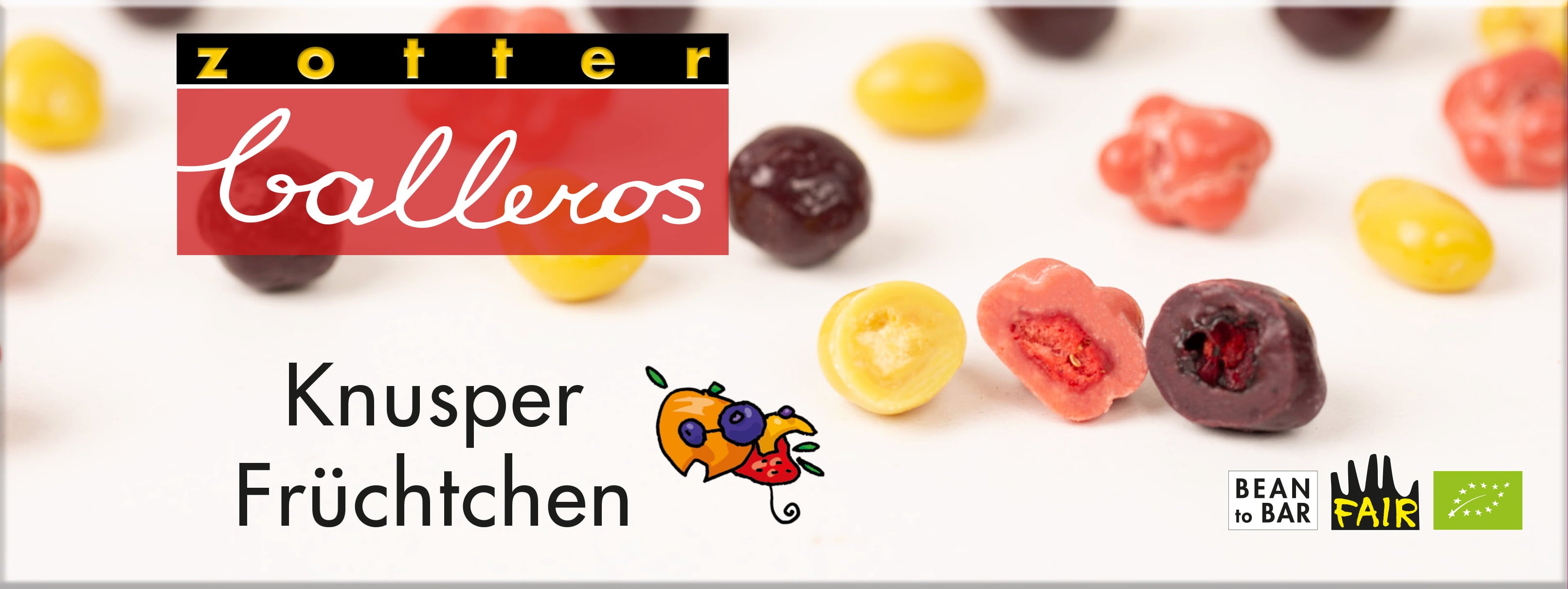 Izkušnenj v jeziku slovenščina za izdelek Zotter Schokoladen Bio Balleros - "hrustljavo sadje"