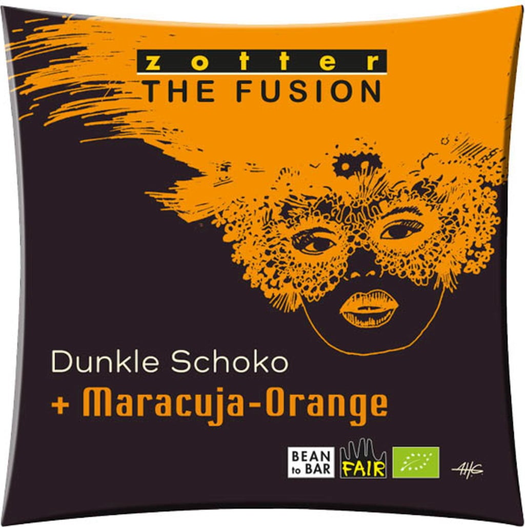 Zotter Schokoladen Bio čokolada Infusion - "temna čokolada + pasijonka in pomaranča", 70 g