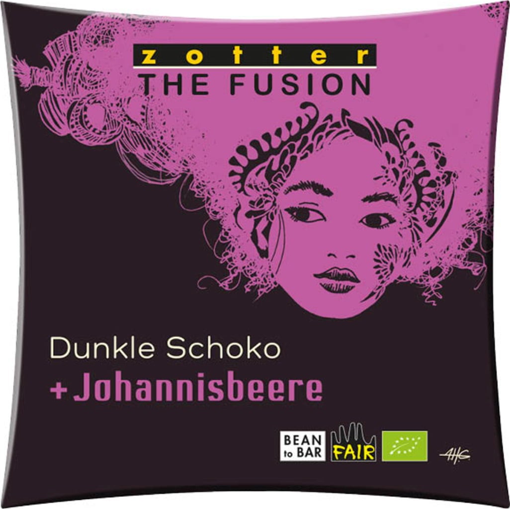Zotter Schokoladen Bio čokolada Infusion - "temna čokolada + ribez", 70 g