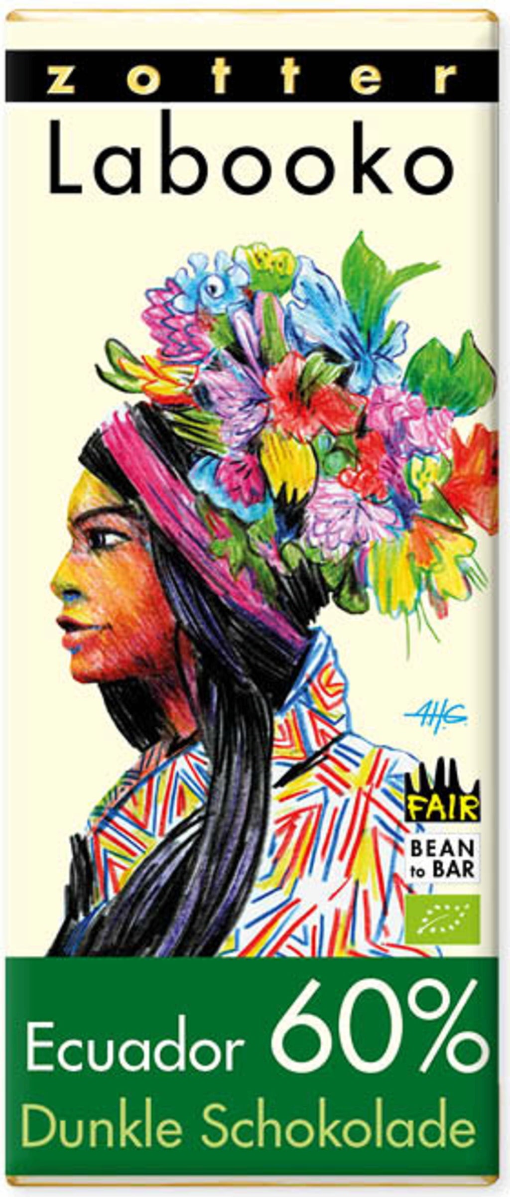 Zotter Schokoladen Bio čokolada Labooko - "60 % EKVADOR", 70 g