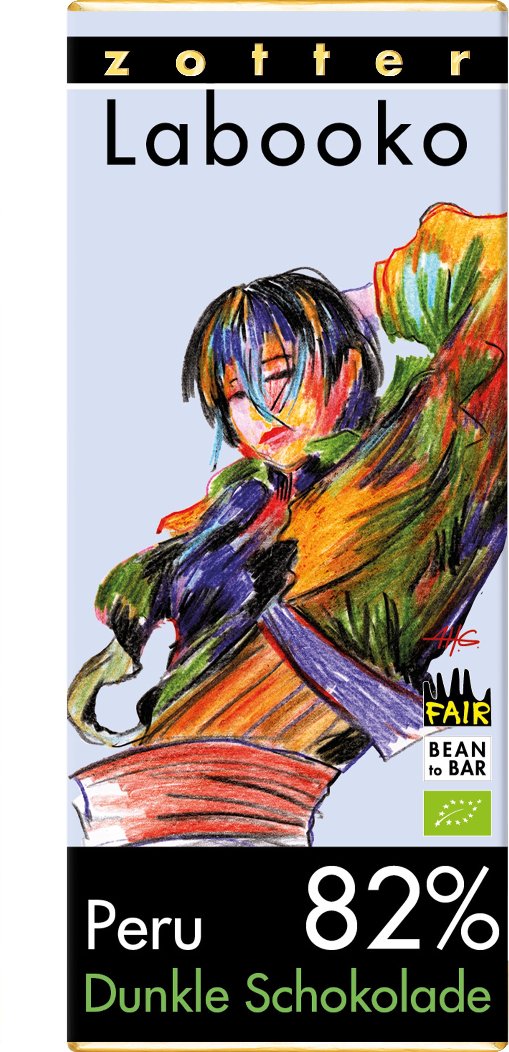 Zotter Schokoladen Bio čokolada Labooko - "Peru 82%", 70 g