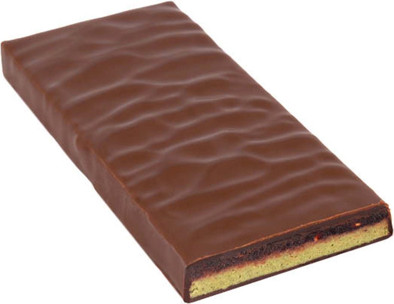 Prva plast je temno rdeča, sadna izkušnja: marcipan iz malin in češenj. Okus je klasičen in spominja na babičino slastno sladico. Tipična Zotterjeva sestavina je inovativna, rahlo zemeljska nota: plast zelenega bučnega nugata, ki celotni poslastici daje štajerski pridih. Hrustljava krhkost vafljev doda hrustljavost in poživi plast nugata.