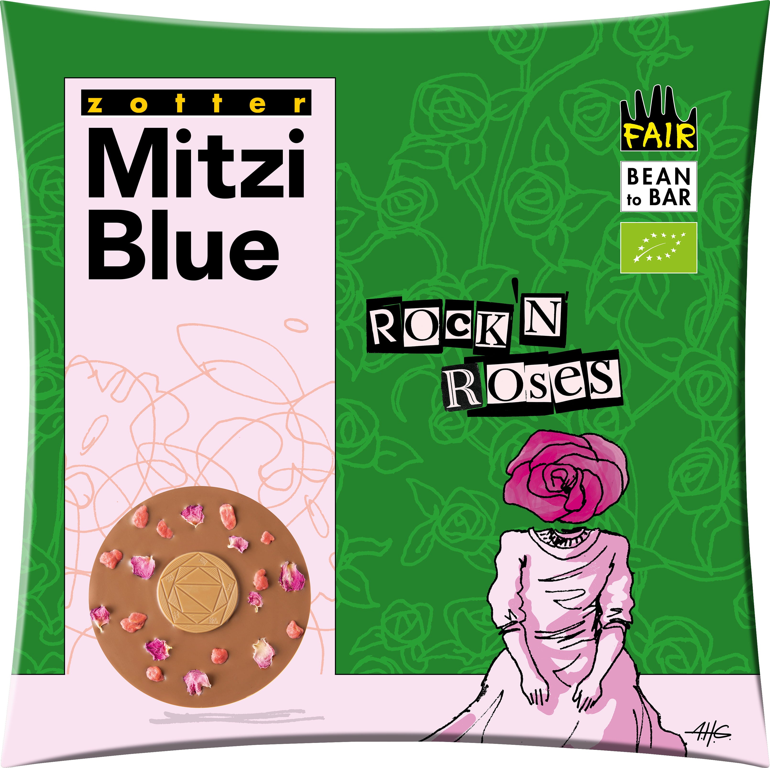 Izkušnenj v jeziku slovenščina za izdelek Zotter Schokoladen Bio čokolada Mitzi Blue - "Rock ´n´ Roses"