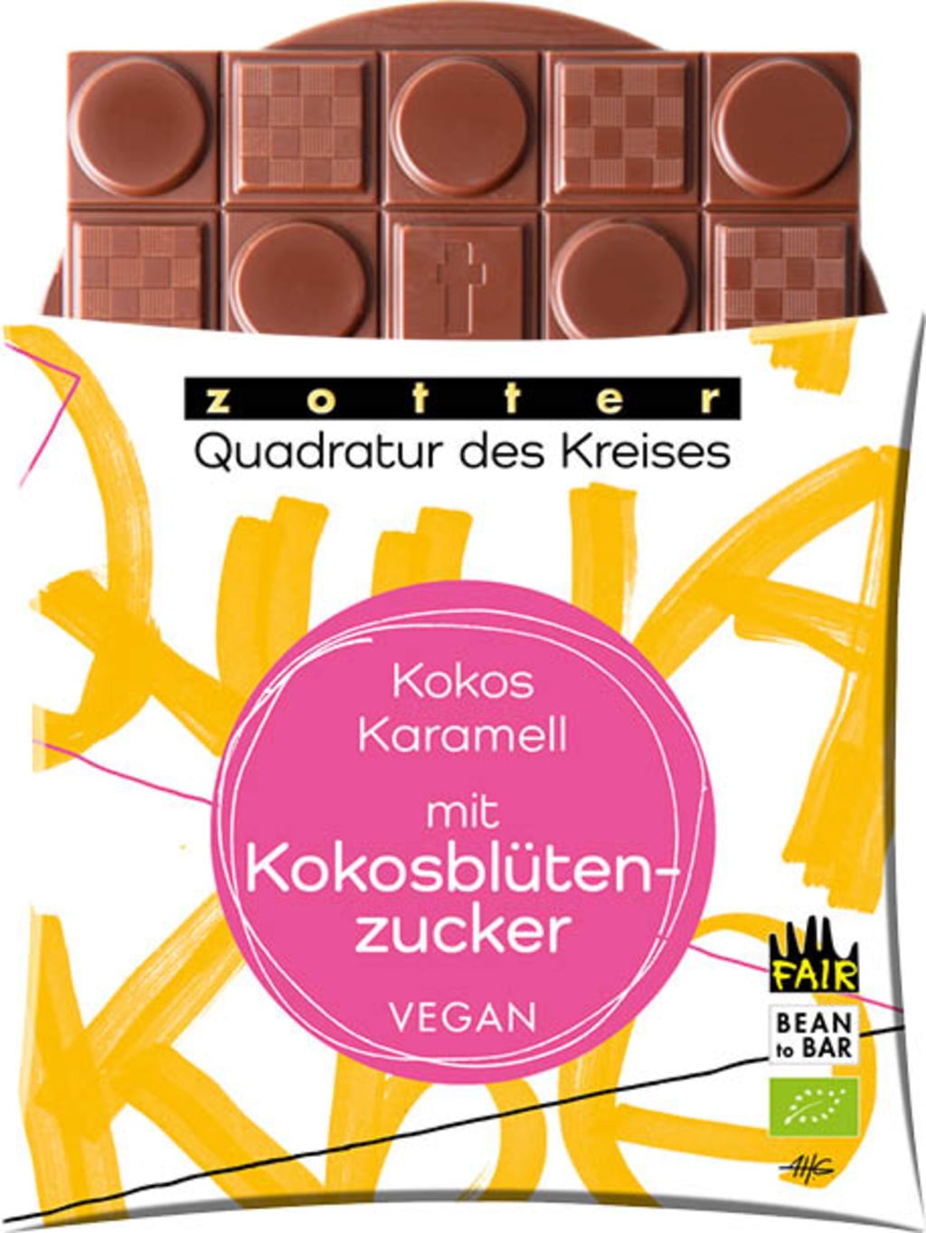 Zotter Schokoladen Bio čokolada Quadratur des Kreises - kokosova karamela s sladkorjem iz kokosovih cvetov, 70 g