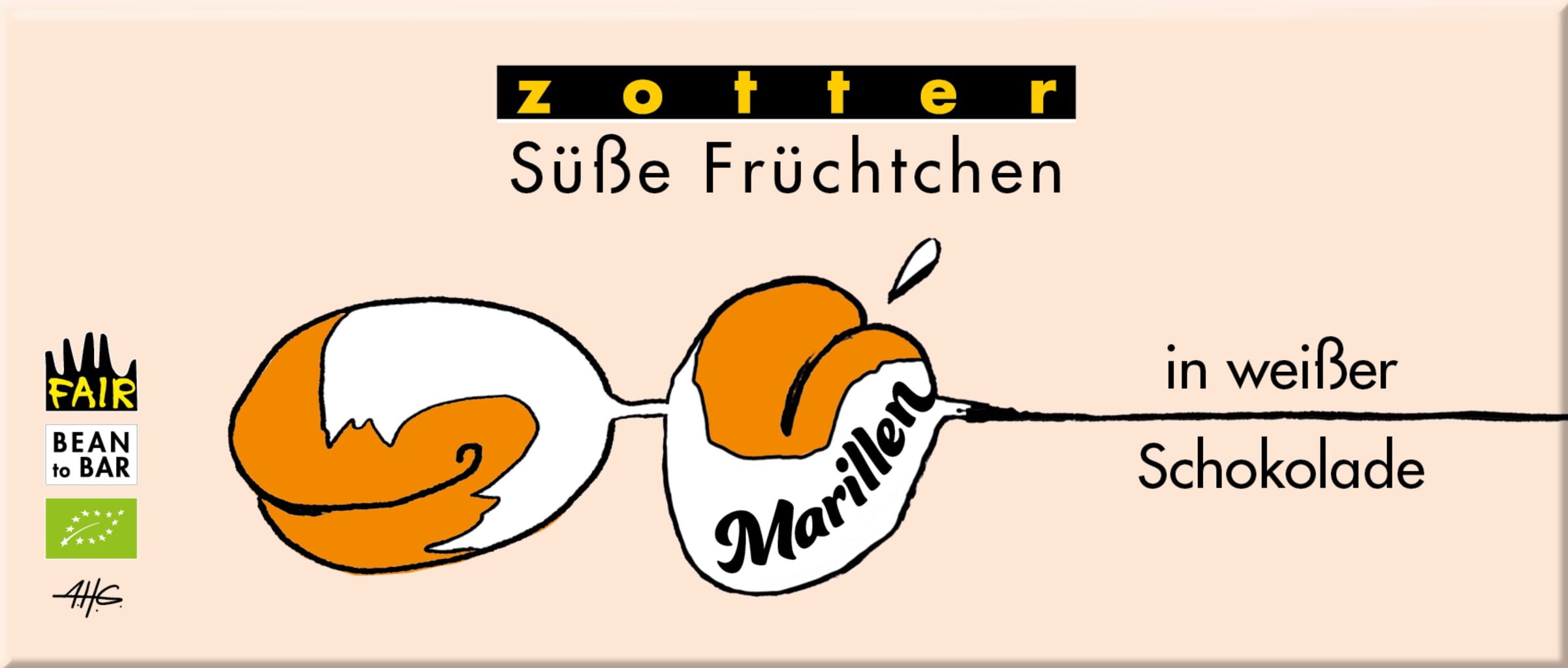V nasprotju s tem je sladka, v ustih topljiva lupina domače bele čokolade ljubeče izdelana iz čistega kakavovega masla, naravnega surovega trsnega sladkorja, polnomastnega mleka ekoloških tirolskih gorskih kmetij, prave vanilije in kančka cimeta. To čokoladi daje čudovit karamelni pridih. Uživajte v tej interakciji: kremasta in sladka na zunanji strani, sadna in marelična v notranjosti!
